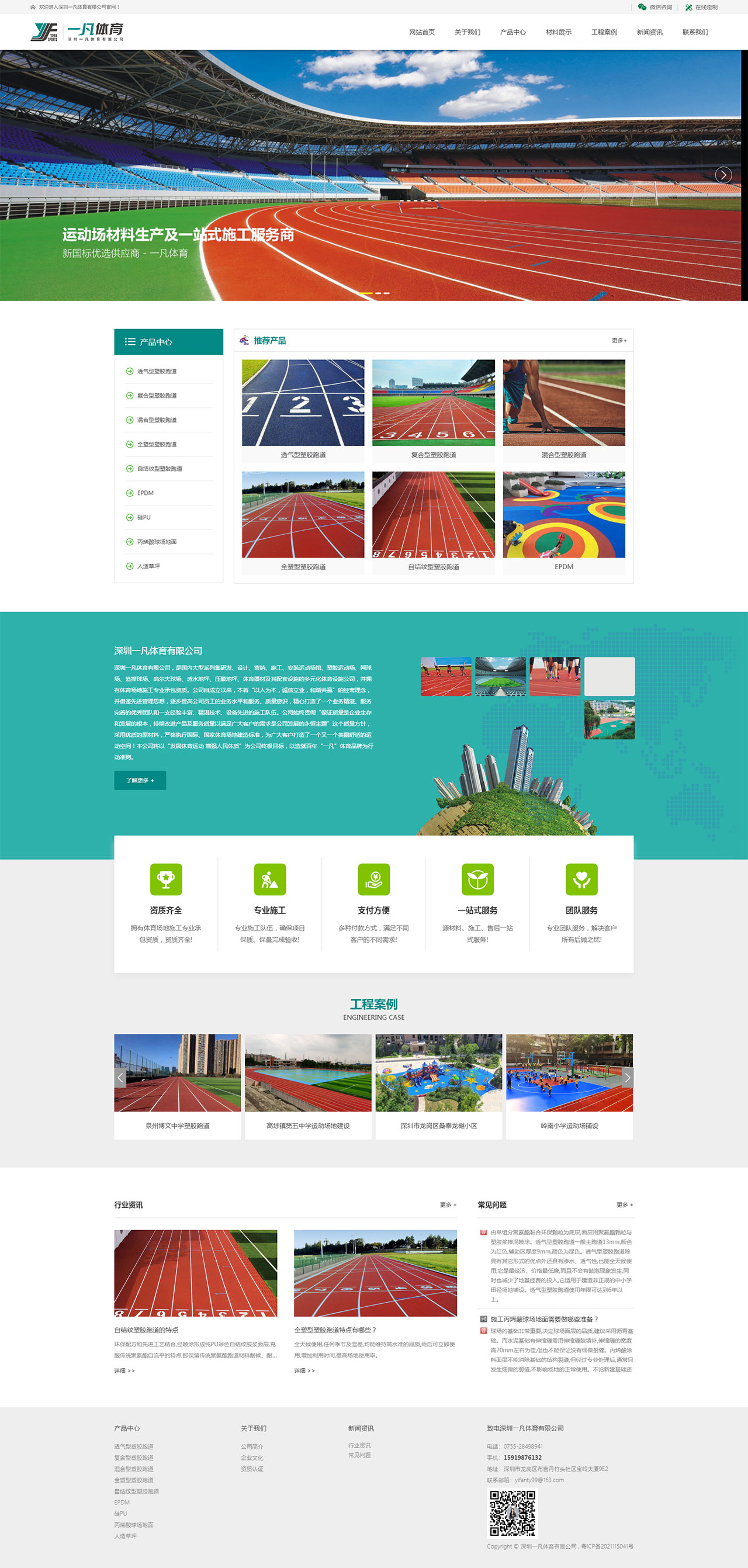 服務(wù)內(nèi)容:體育設(shè)施網(wǎng)站設(shè)計制作、H5自適應(yīng)網(wǎng)站建設(shè) 深圳一凡體育有限公司,是國內(nèi)大型系列集研發(fā)、設(shè)計、營銷、施工、安裝運動場館、塑膠運動場、網(wǎng)球場、籃排球場、高爾夫球場、透水地坪、壓膜地坪、體育器材及其配套設(shè)施的多元化體育設(shè)施公司,并擁有體育場地施工專業(yè)承包資質(zhì)。